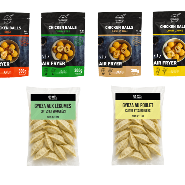 Chicken balls croustillantes à l’air fryer ou gyoza généreux en format familial : des recettes asiatiques savoureuses, cuites et surgelées, ...