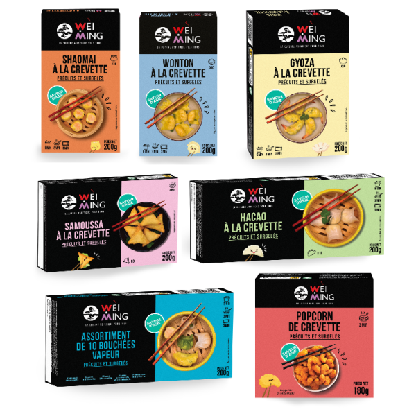 Shaomai, wonton, gyoza, samoussa, hacao, popcorn : toutes les bouchées asiatiques à la crevette réunies en une gamme. Précuites et ...